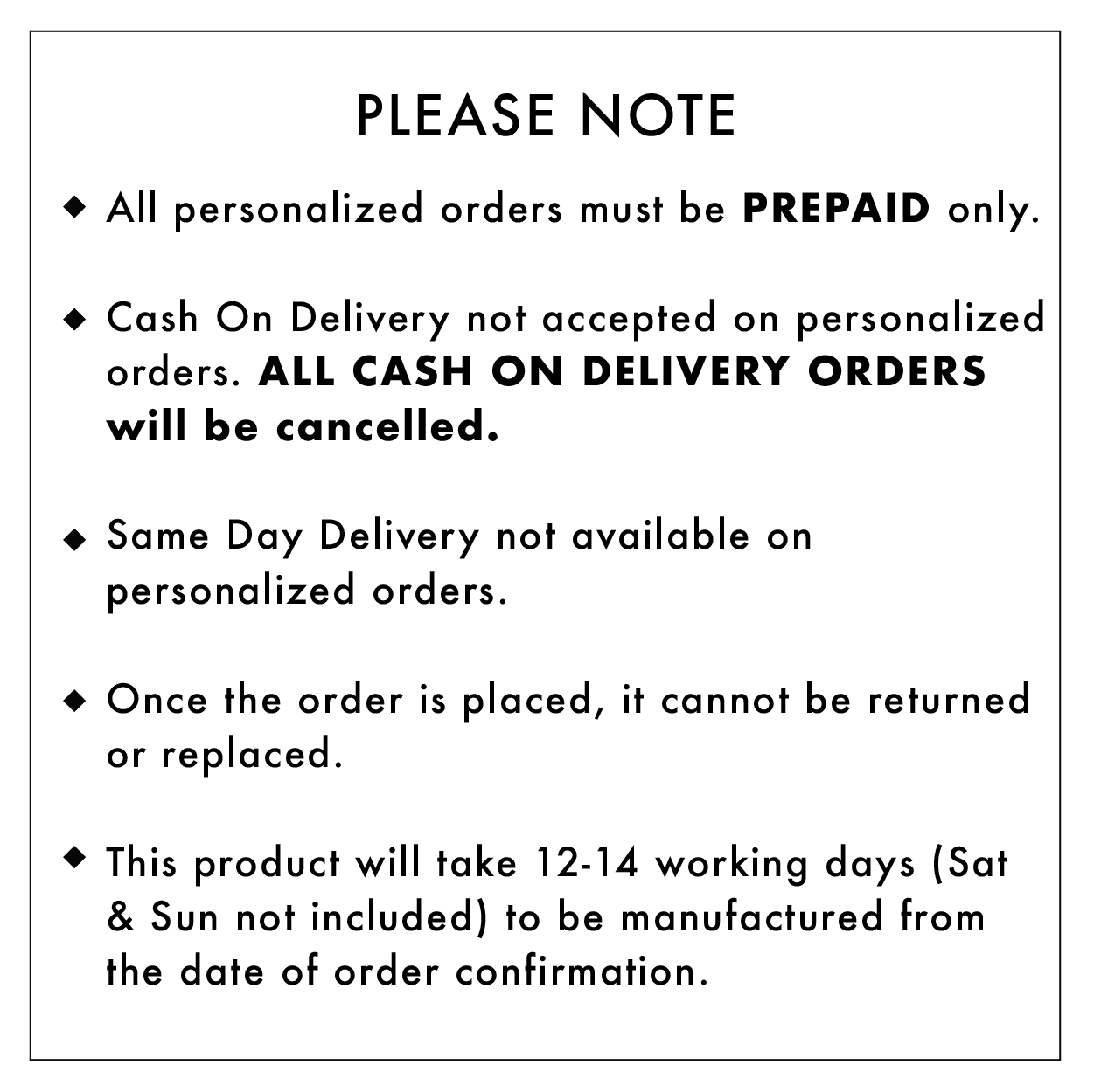 Additional Information: Since this product is custom made it could lead to minor scratches on the surface but that should not be considered a defect.
