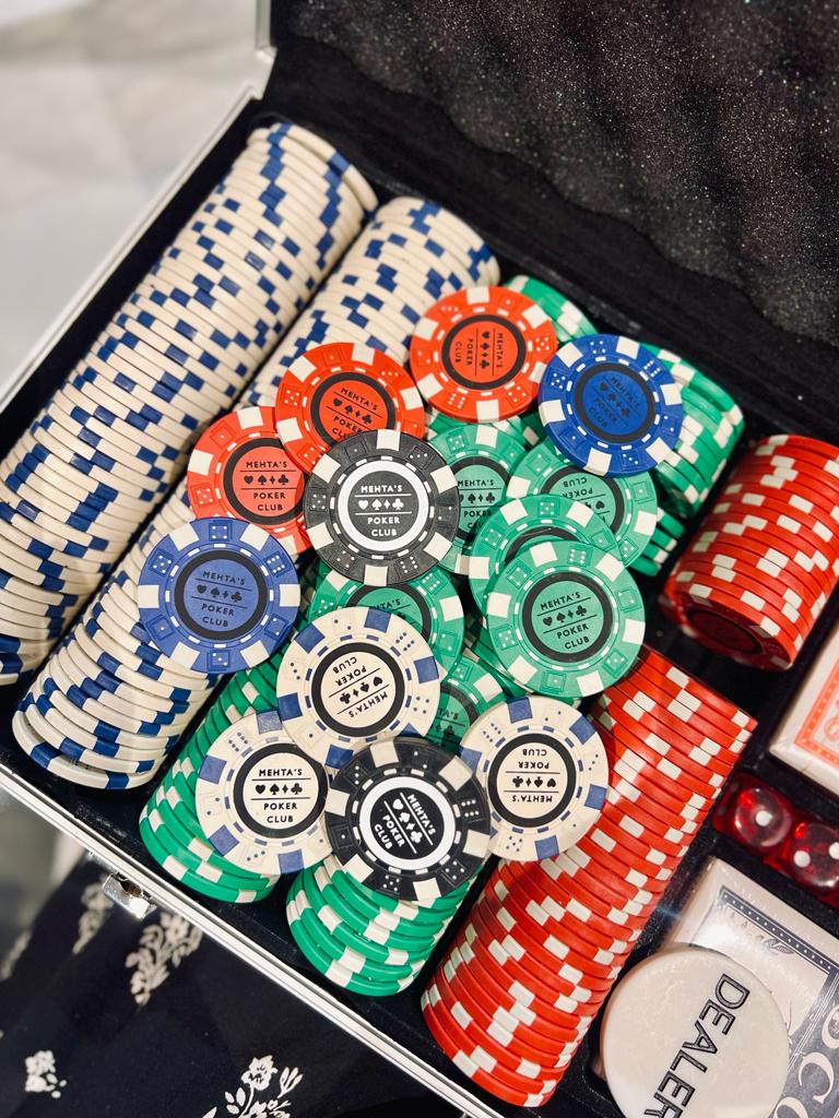 Description:Introducing our premium Poker Club Set, complete with casino-quality poker chips, designed to elevate your game nights to the next level. These chips are not just any chips â they are 11.5 grams each, exuding a heavy and authentic feel that mimics the true casino experience.