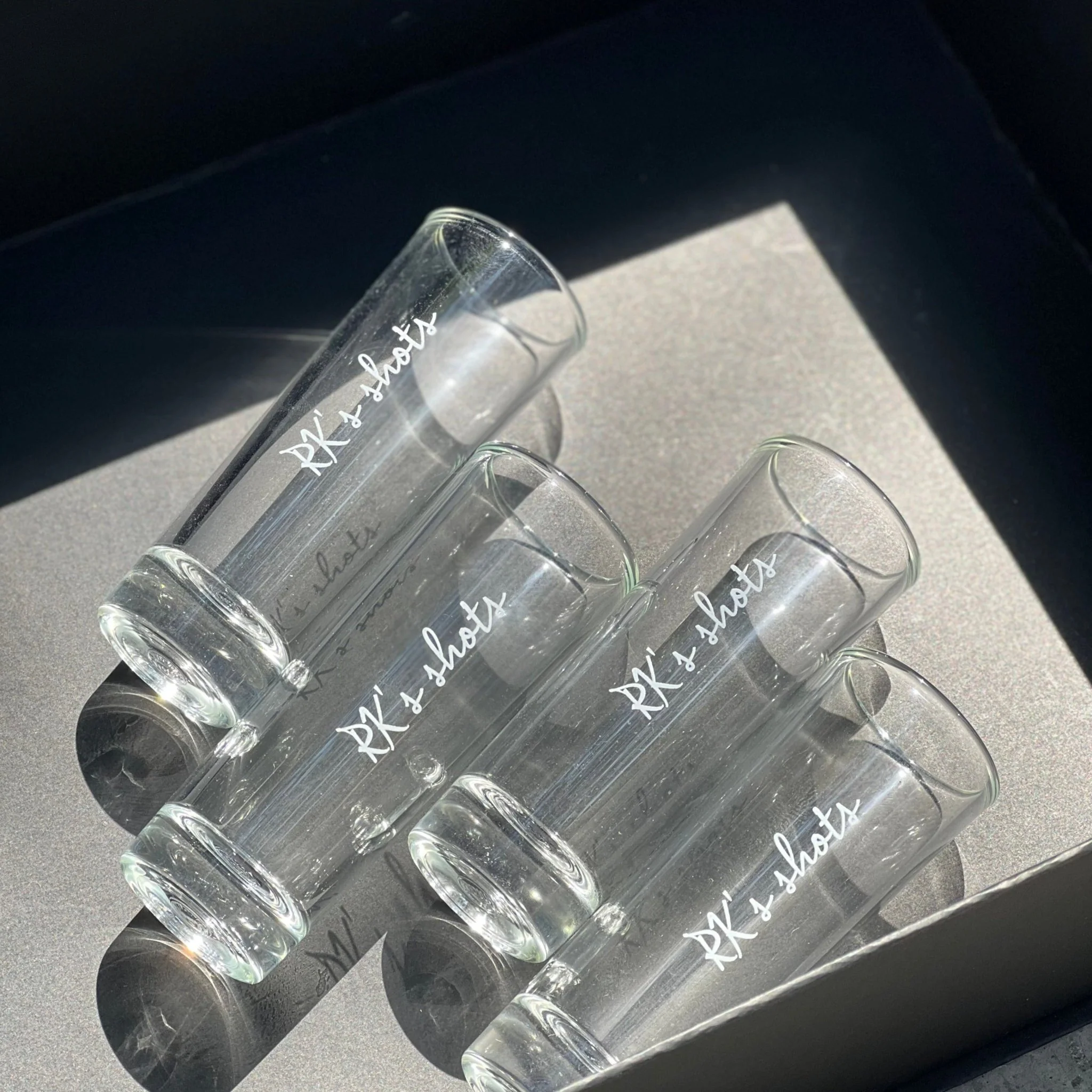 Description: This personalized shot glasses which includes two small glasses are used for consuming drinking shots of alcohol or other beverages. These shot glasses are often made of glass. These glasses are personalized by adding a customized design or message to them, which can include the recipient's name, a special date, or a unique message.