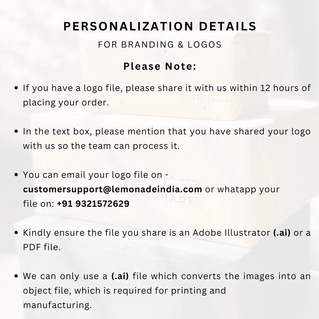 Personalization Details:1. Print will be designed as per text/logo shared.